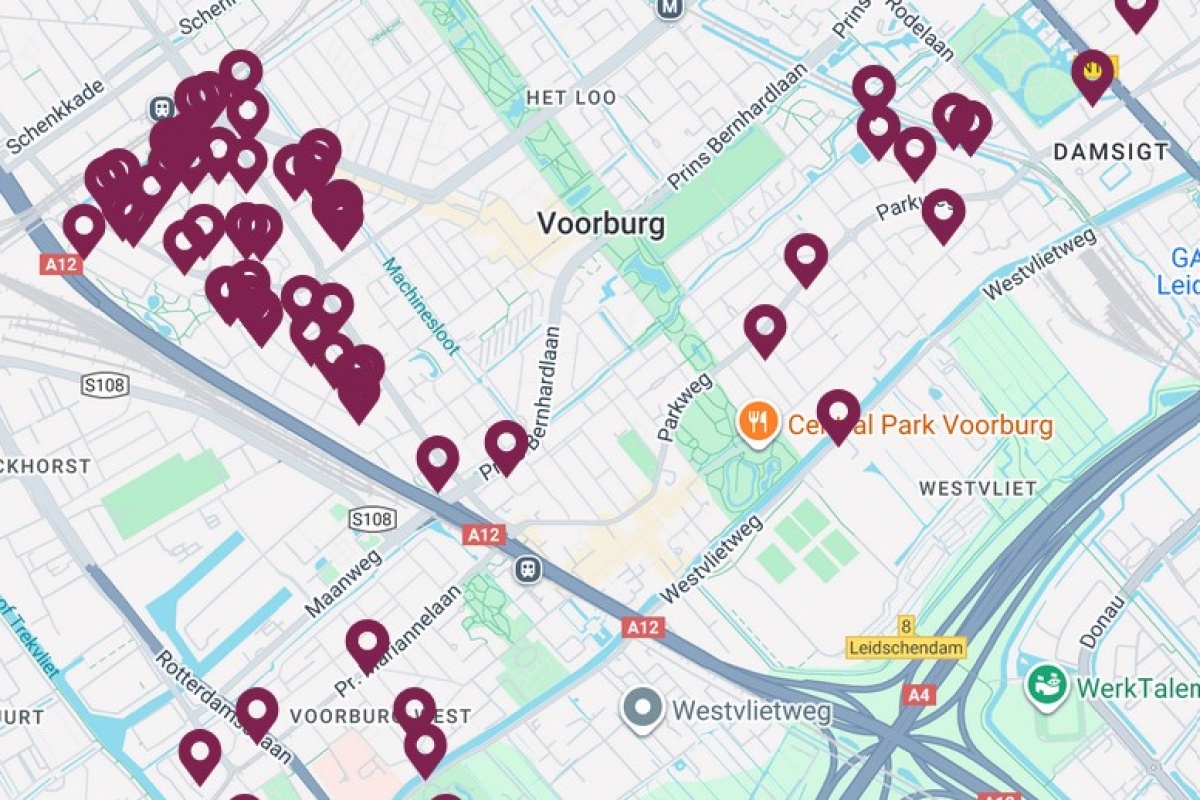 Kijk op de plattegrond naar de adressen waarbij Stolpersteine in Leidschendam - Voorburg zijn geplaatst.